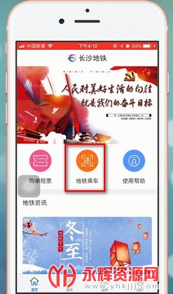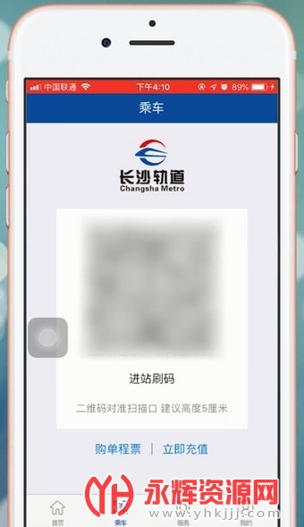 1.首先打开长沙地铁app,在首页点击地铁乘车功能就会出现二维码;