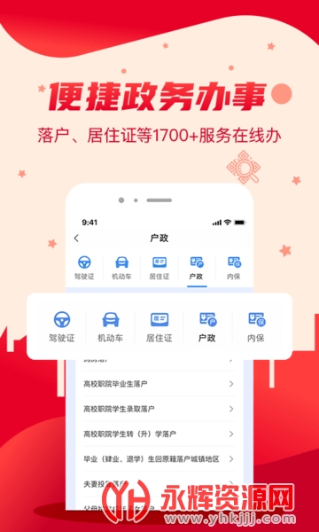6、网上政务大厅,在手机上即可办理关于户籍、身份证、随迁子女上学、生育、出入境和住房等政务事务。